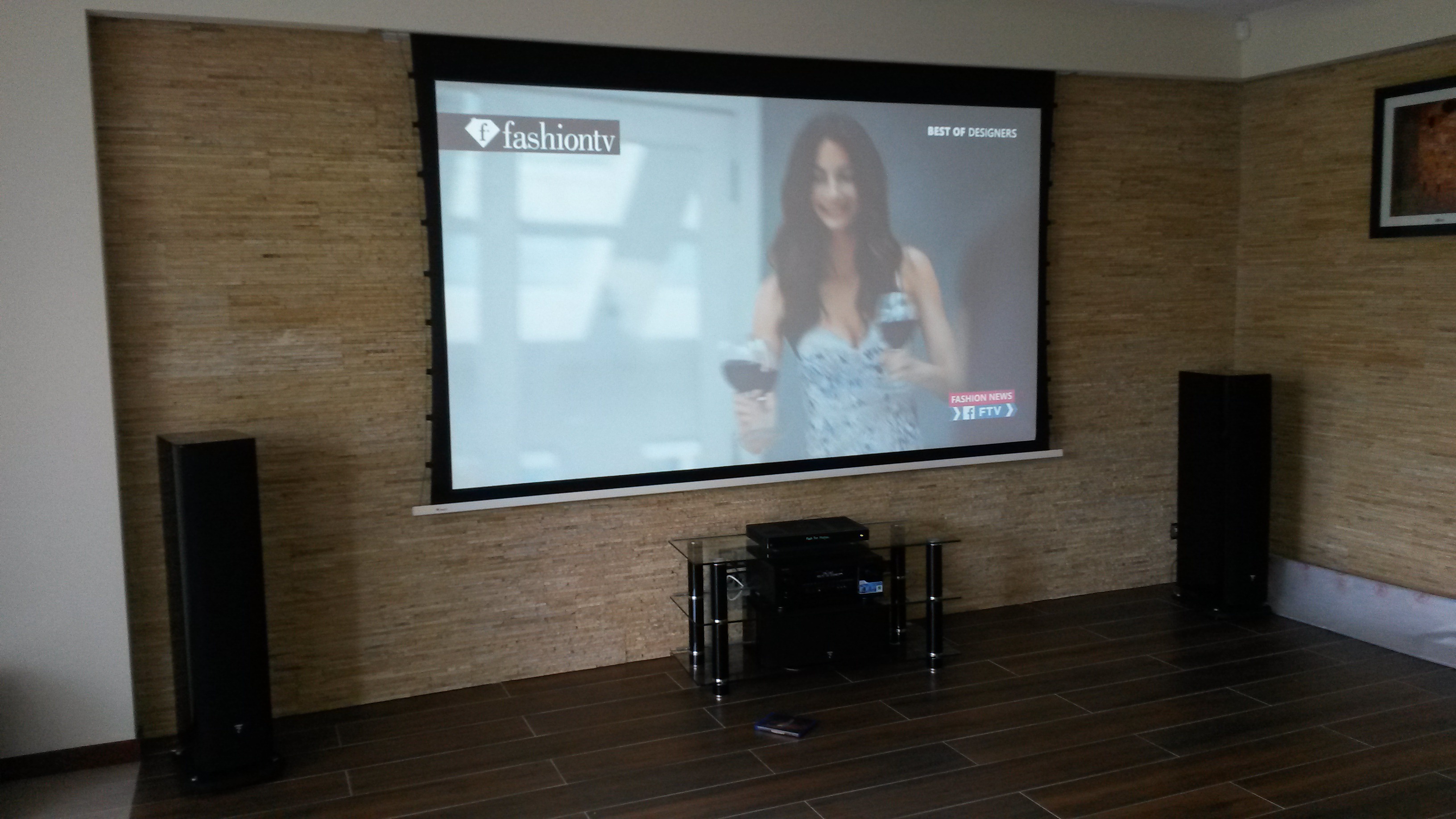 instalacja Audio Video w Warszawie, zawieszenie ekranu multimedialnego, montaż zestawu audio hifi oraz głosników stereo. Instalacja projektora do kina domowego JVC full hd